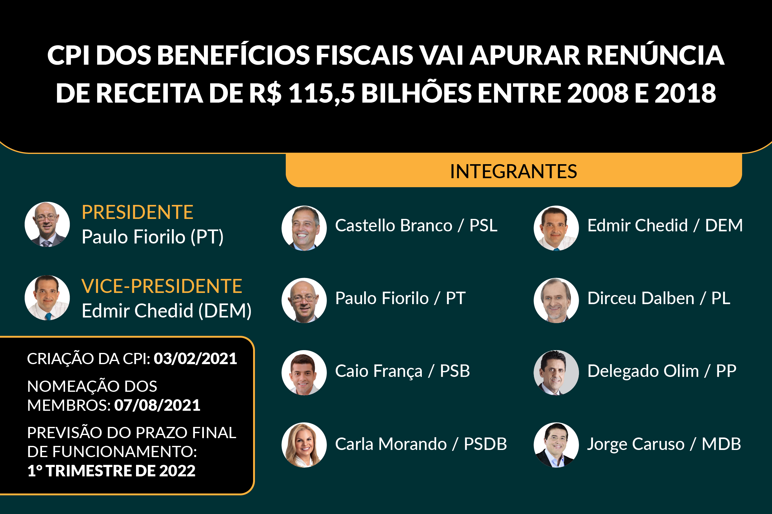 CPI dos Benefícios Fiscais elege presidente e vice-presidente