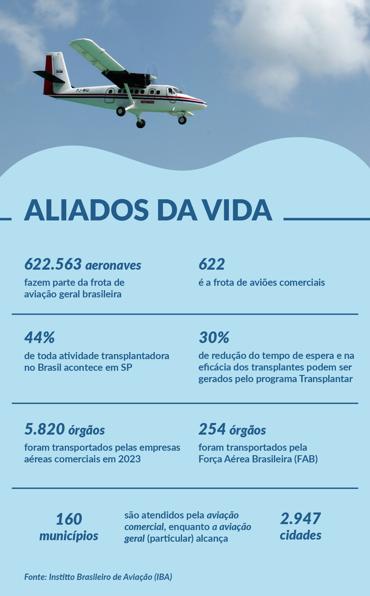 Vale lembrar que a IBA buscou apoio da Associação Brasileira de Normas Técnicas (ABNT) para a fiscalização e auditoria de todos os voos que serão realizados. Isso serve para dar clareza e segurança ao processo, garantido que as viagens doadas serão realizadas especificamente para o transporte de órgãos para transplante.