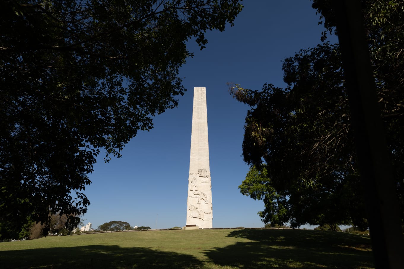 A estrutura do monumento foi projetada pelo escritor ítalo-brasileiro Galileo Ugo Emendabilli e construída pelo engenheiro alemão Ulrich Edler. O Obelisco começou a ser levantado em 1947, mas só foi inaugurado em 1955, ainda no embalo das comemorações dos 400 anos de São Paulo. A proximidade com o Parque Ibirapuera, inaugurado também neste período, foi parte de um processo de intensa valorização da cultura paulista.